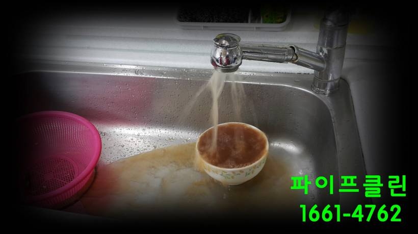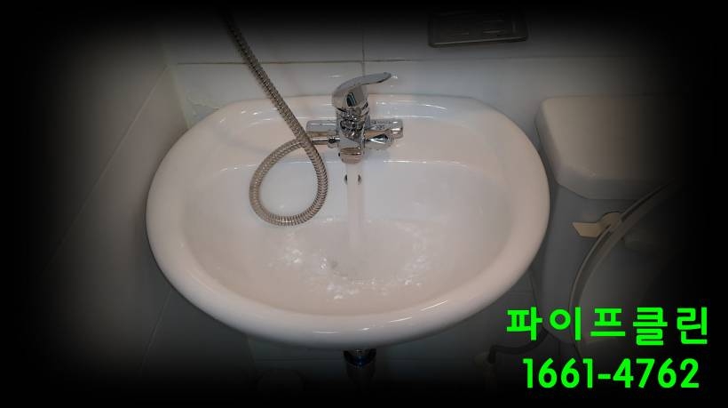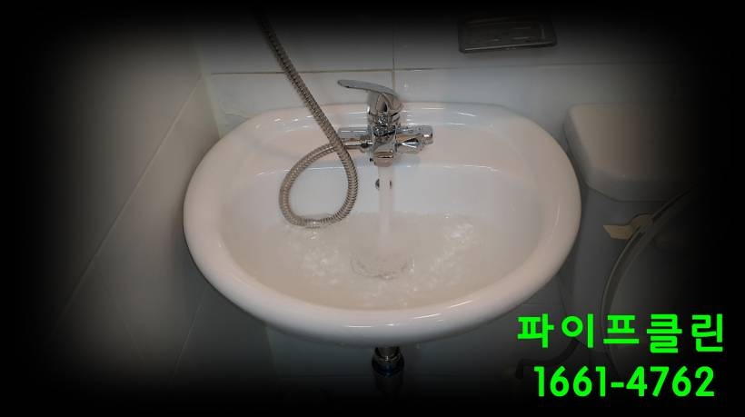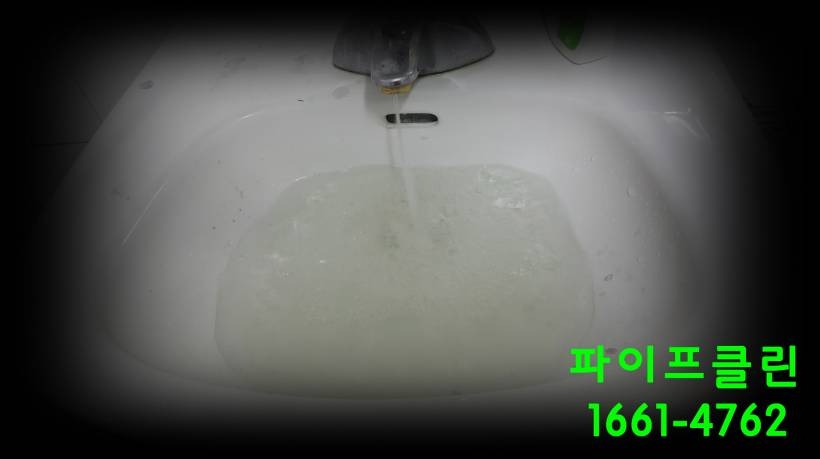 냉수 배관에 청소되어 맑은 물이 흘러 나오고 있습니다.