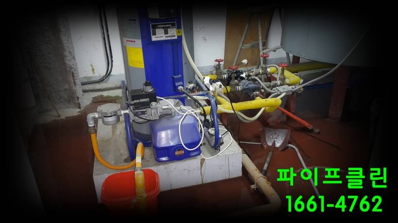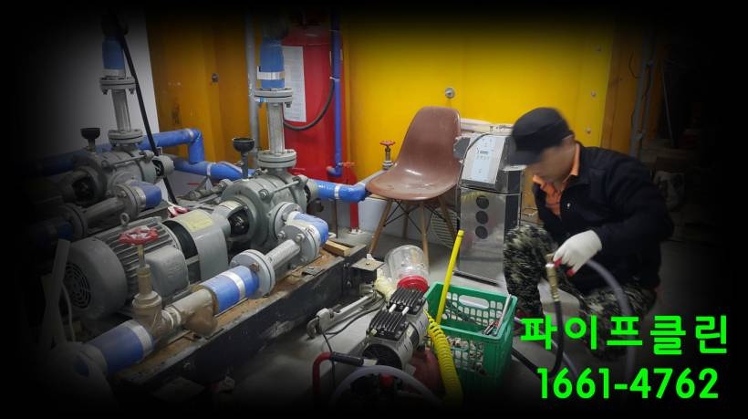 다목적 배관세척기 BUBBLE JET으로 냉수배관 청소/세척 작업을 진행하고 있습니다.