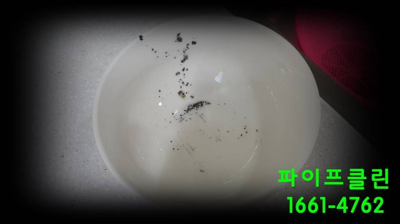 조리실의 냉수 배관이 청소/세척 되면서 제거된 이물질 입니다.